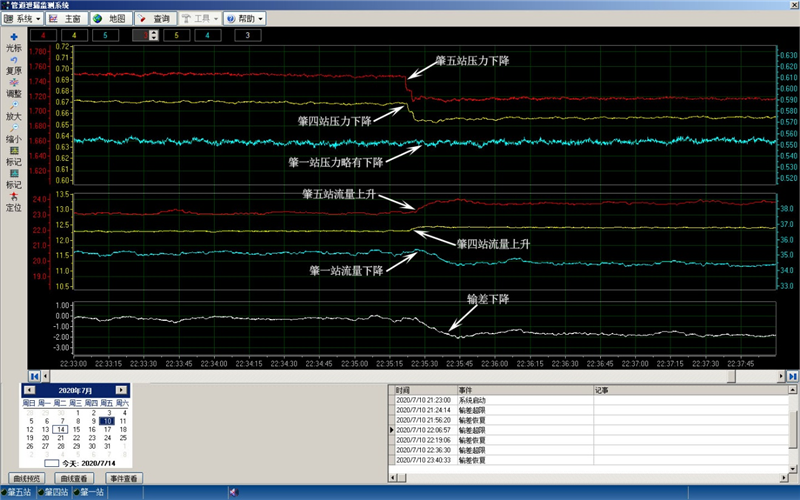 2020年7月10日22時35分26秒發(fā)生泄漏,36分30秒系統(tǒng)報警,系統(tǒng)定位在距肇五站1.6公里處。23時39分22秒關閥,該次泄漏歷時1小時3分56秒,瞬時泄漏量約1.9m3/h,累計泄漏2.02m3。